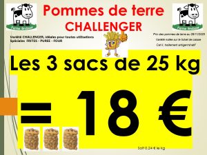 Superbe promo en CHALLENGER 25 kg : 1 SAC POUR 7,95 € , 3 sacs de 25 kg pour 18 euros